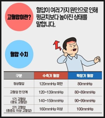 - 스트레스 관리 스트레스는 고혈압을 악화시키는 요인 중 하나입니다. 스트레스를 관리하고 충분한 휴식을 취하는 것이 중요합니다. 여가 시간을 활용하여 취미 활동을 즐기거나 명상과 요가 등의 심신을 안정시키는 활동을 통해 스트레스를 효과적으로 해소할 수 있습니다.