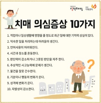 - 조기 진단과 의료 지원 치매 초기 증상이 발견된다면, 가족이나 주변 지인들과 상의하여 조기에 의사를 방문하는 것이 중요합니다. 조기 진단은 치매 관리와 환자의 삶의 질을 향상시키는 데 도움이 됩니다. 의사와 함께 적절한 치매 관리 방안을 세우고, 필요하다면 약물 치료나 치매 관련 프로그램을 이용해보세요.