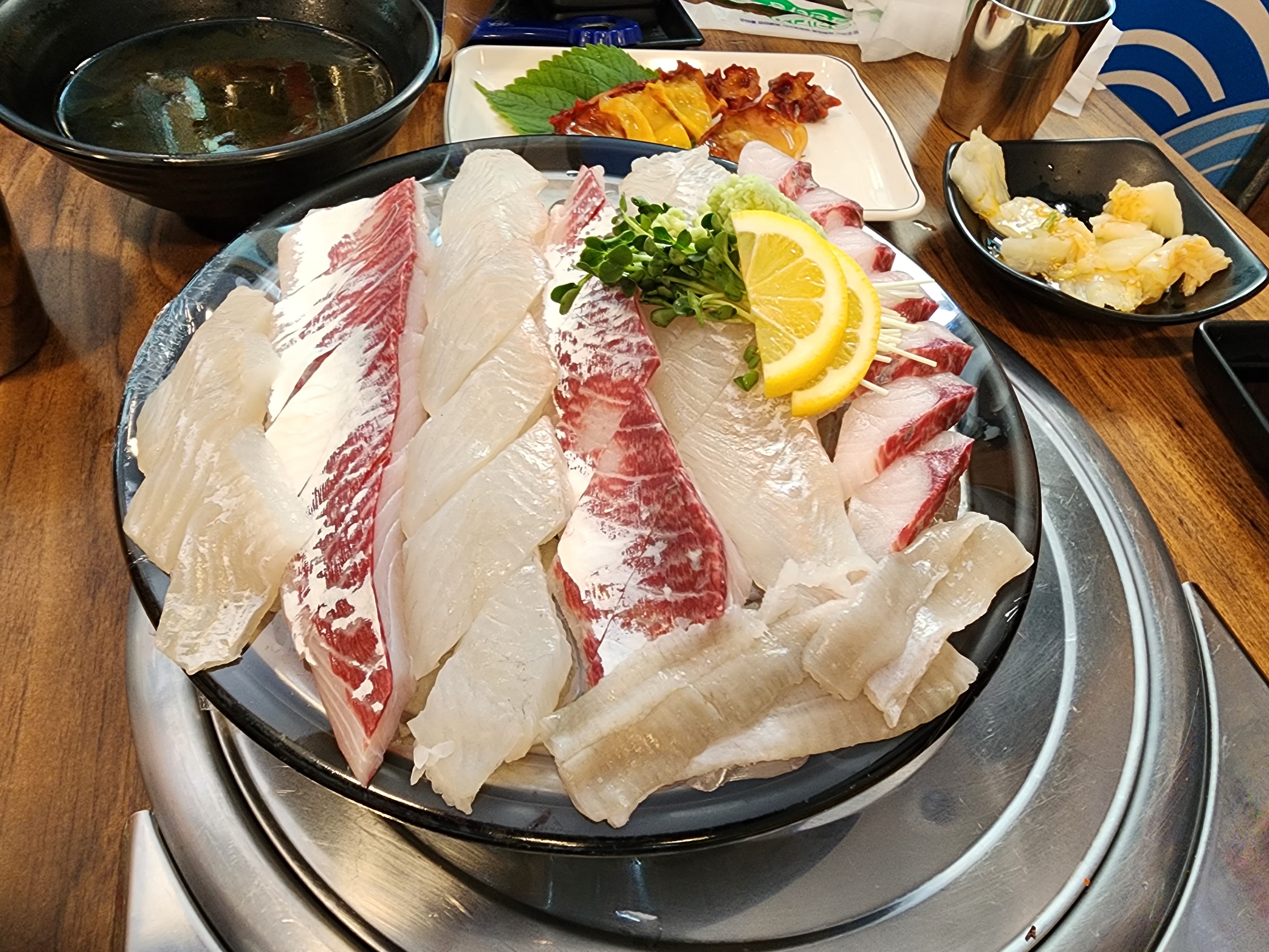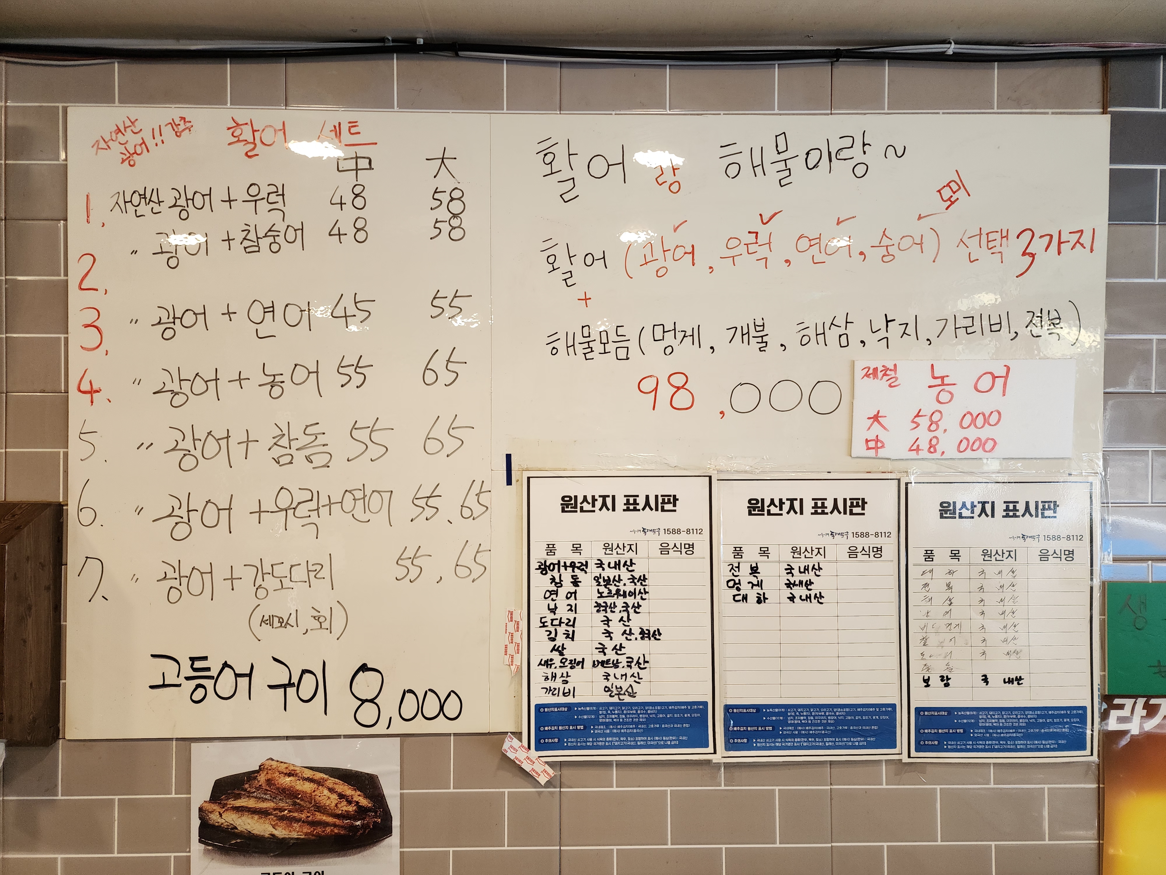 저희는 광어+수어 세트, 물회를 주문해버렸습니다.