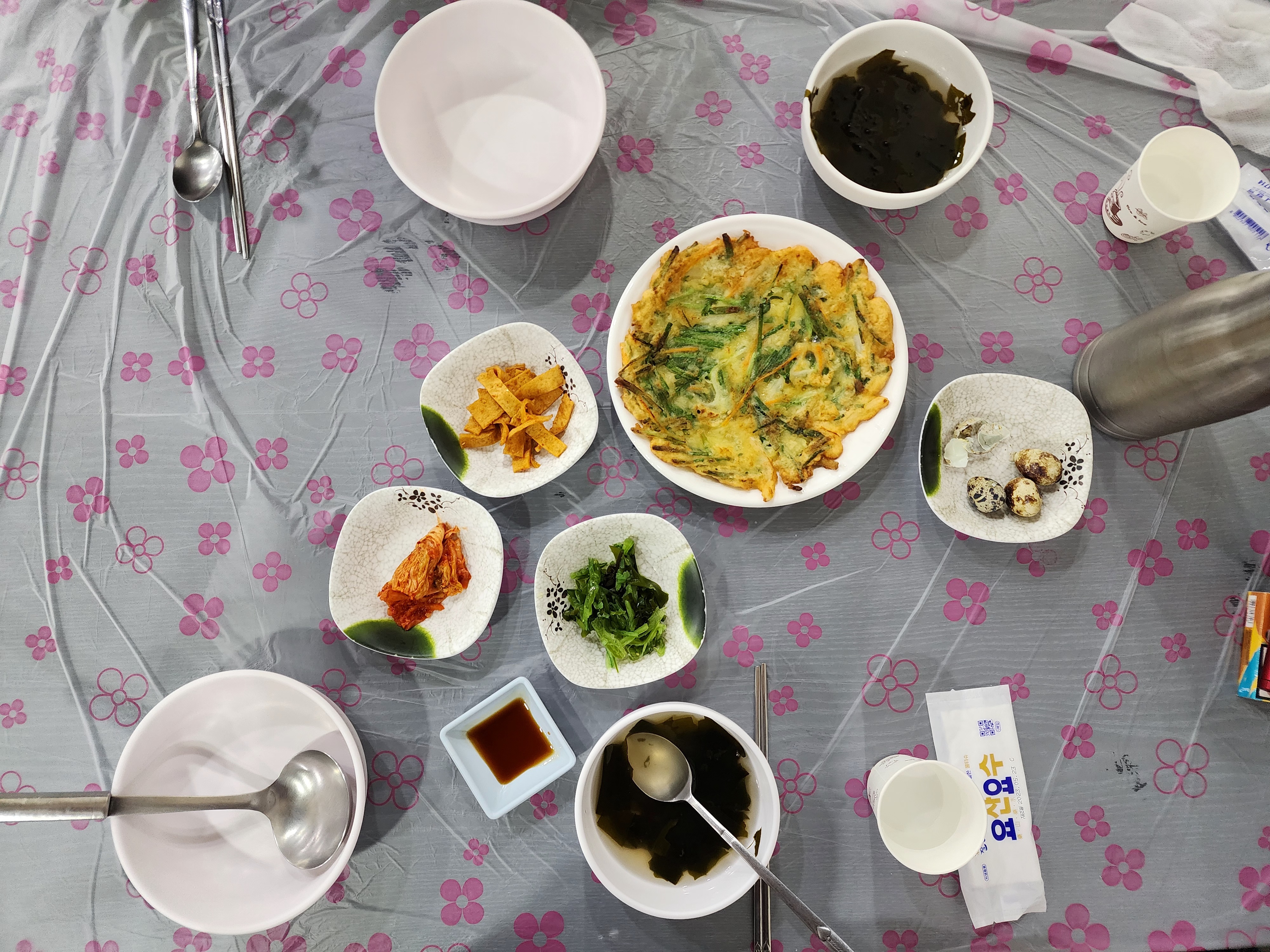 조촐한 밑반찬들이 나온다. 부침개 리필 안된다. 근데 맛있다요.